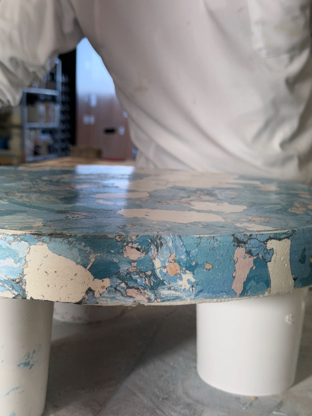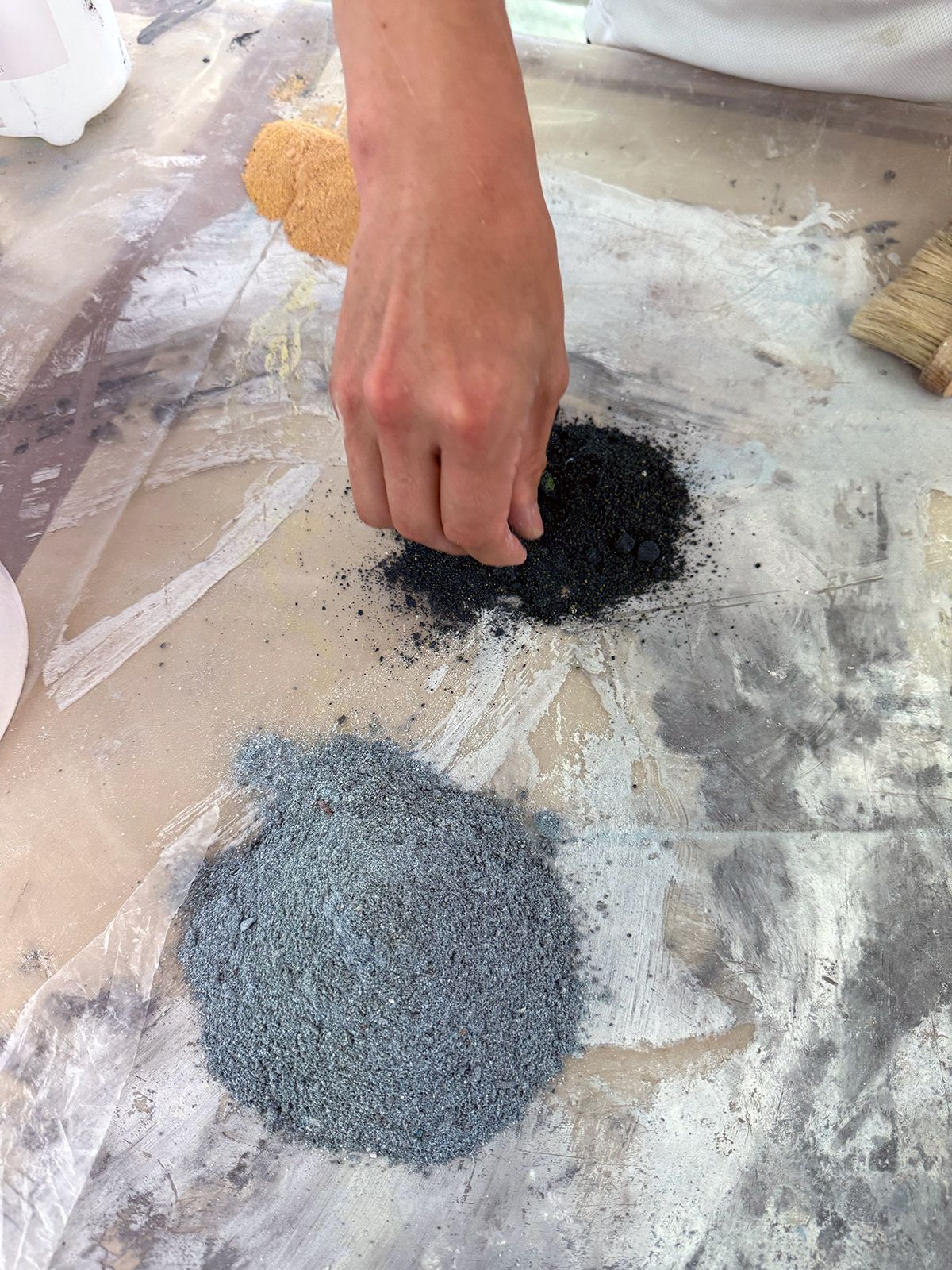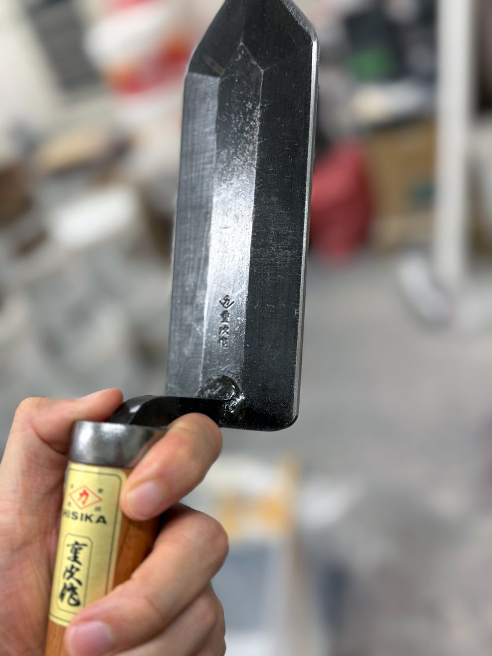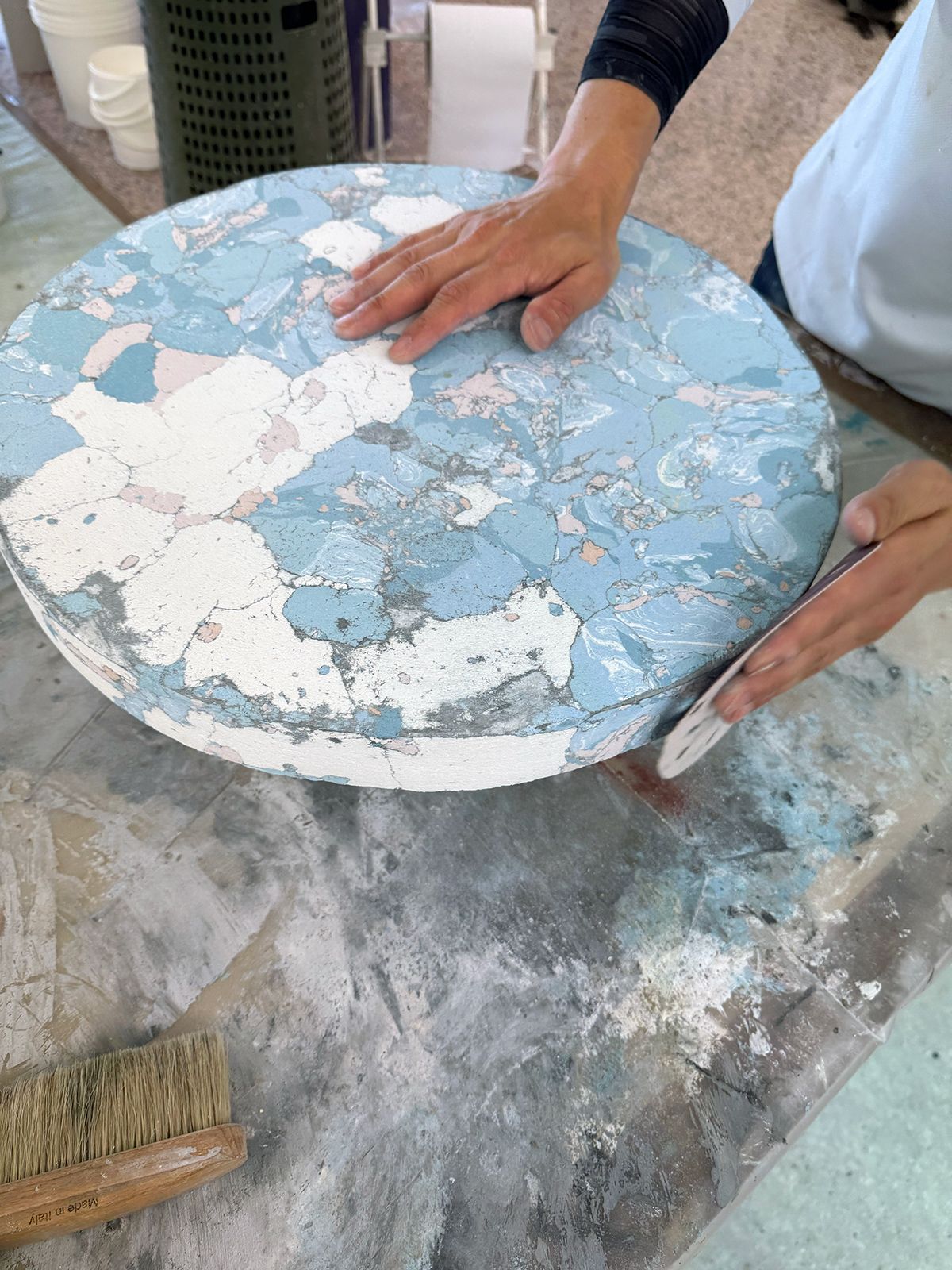 What was particularly impressive was the trowel used to finish the clay-like material smoothly. Mr. Zeljko said he had this trowel custom-made by a blacksmith, a very heavy one, structured to transmit force firmly without losing to the material. Its high finishing precision was exactly proof that tools and technology became one.