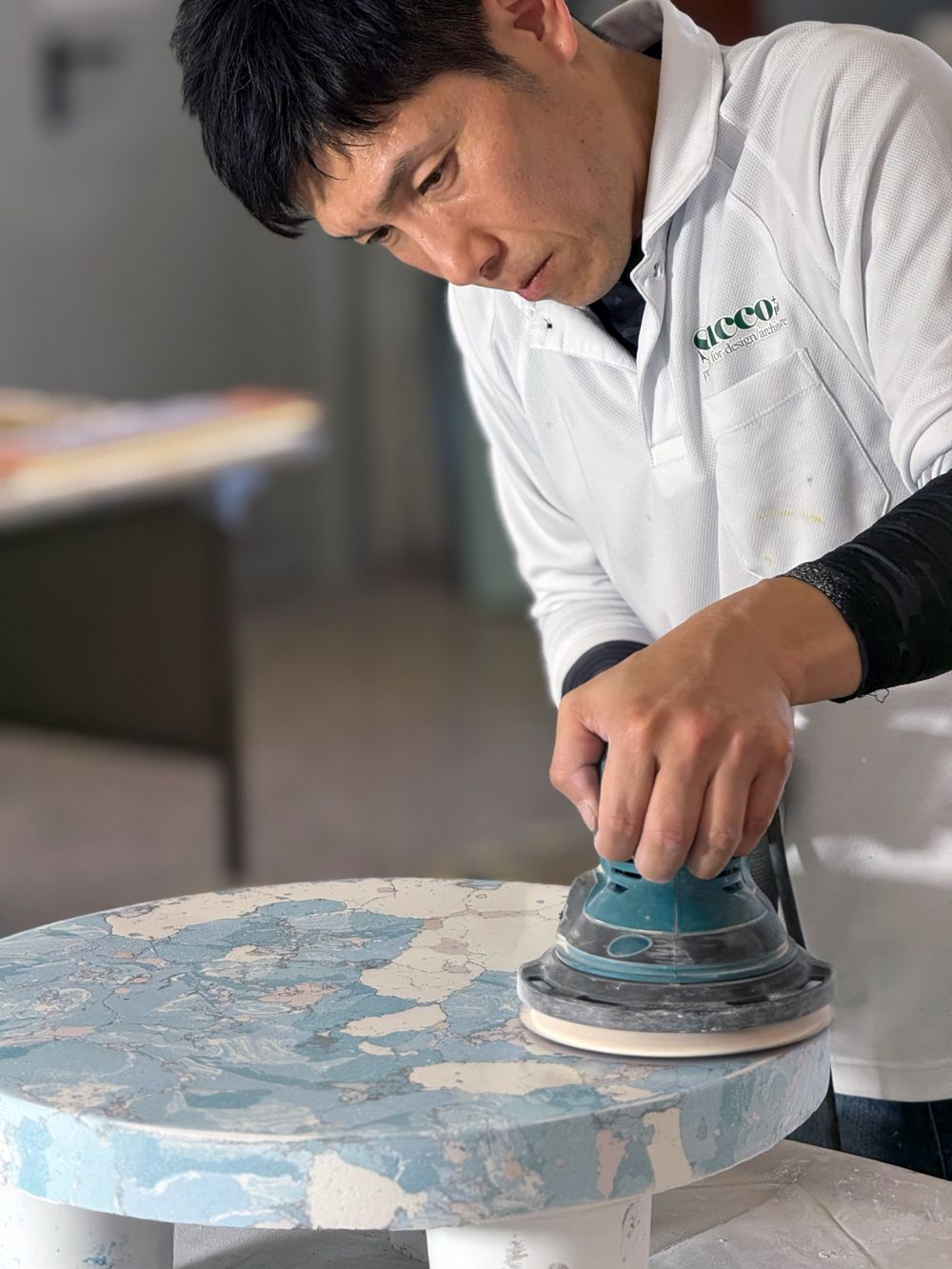 This finish has a charm that cannot be fully conveyed by photos or samples. By actually constructing, polishing, and seeing its expression in the light -- by touching that process, you can experience the magnitude of the impact the material gives to the space.